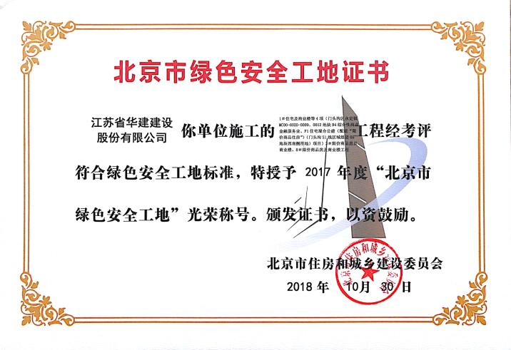 北京公司兩項工程獲北京市綠色安全工地 時間:2018-11-11 3604 近日,從北京市住房和城鄉建設委員會傳來喜訊,由北京公司總包承建的1#住宅及商業樓等4項(1#住宅及商業樓、2#住宅及商業樓)和1#住宅及商業樓等4項(3#限價商品房及商業樓、8#限價商品房及商業樓)兩個標段項目榮獲 “北京市綠色安全工地”光榮稱號,并獲頒證書。