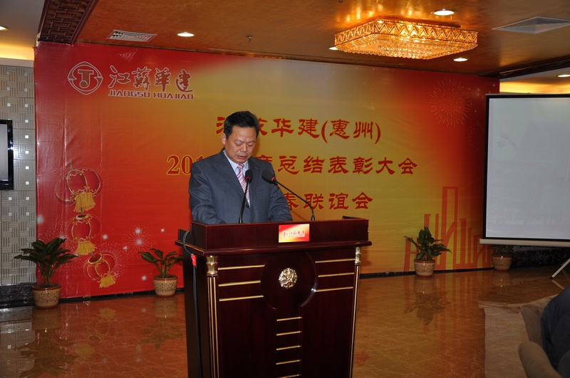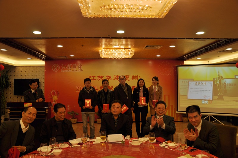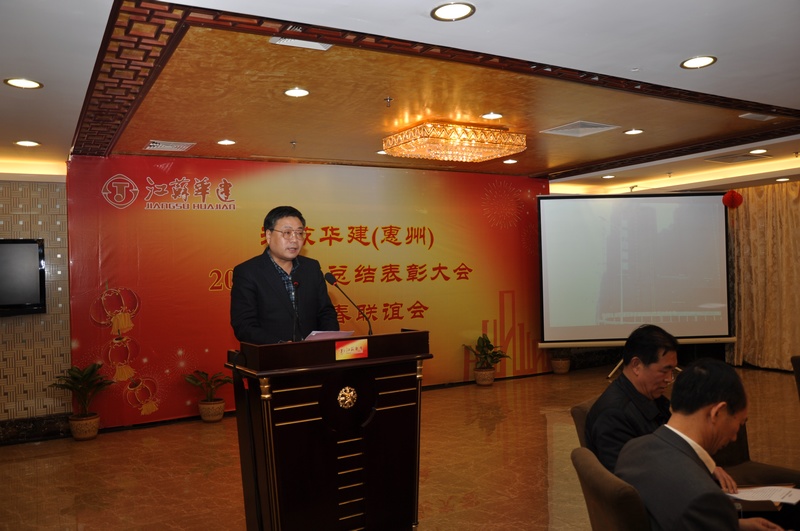 118下午,惠州新綠金酒店二樓宴會廳,洋溢著一派歡樂祥和的氣氛,江蘇華建(惠州)2012年度總結表彰會暨迎春聯誼會在這里召開。公司副董事長、總經理宗有農,公司副總經理林建華、公司總經濟師蔡華國和惠州公司經營層等領導出席,惠州公司各工程處負責人及主要管理人員、公司機關全體人員以及先進集體和先進個人代表等共130多人參會。