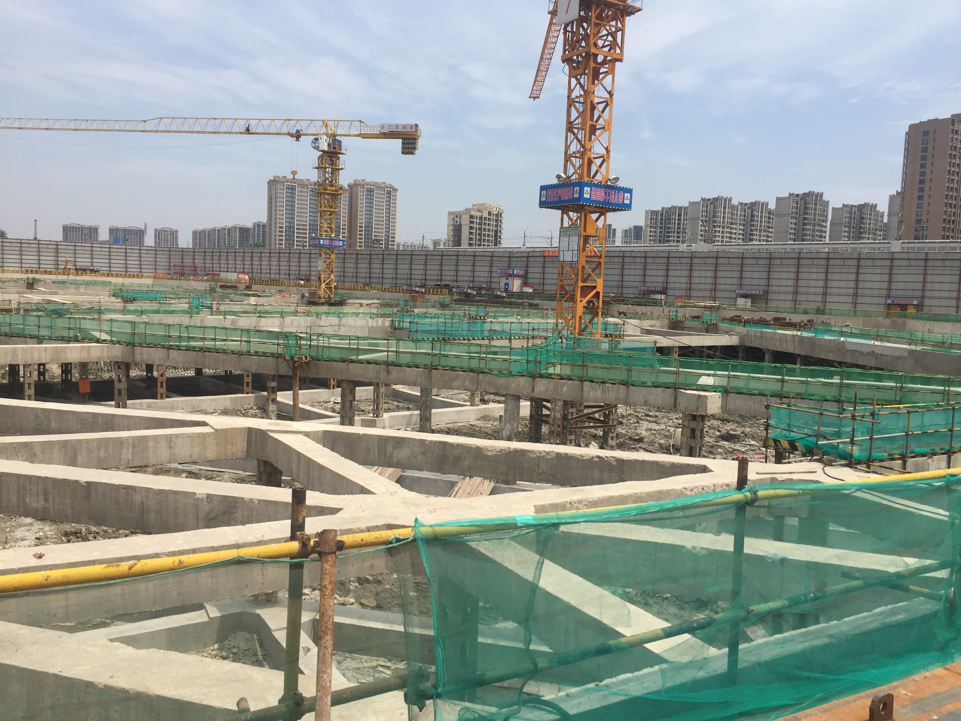 印象城項目是“印力集團”投資興建的大型商業和交通綜合體建筑,地上六層,地下室三層,總建筑面積約32萬m2,整體工程特別是地下結構相當復雜,施工難度大。觀摩人員重點了解了總包企業在場地布置、文明施工及地下結構施工工藝和技術預控等方面情況。