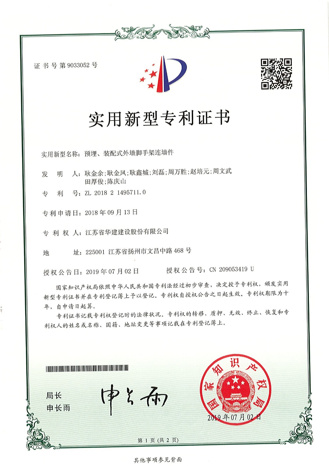 實(shí)用新型專利(預(yù)埋、裝配式外墻腳手架連墻件)