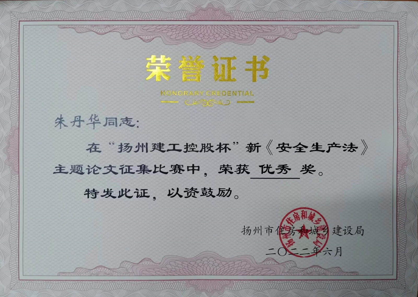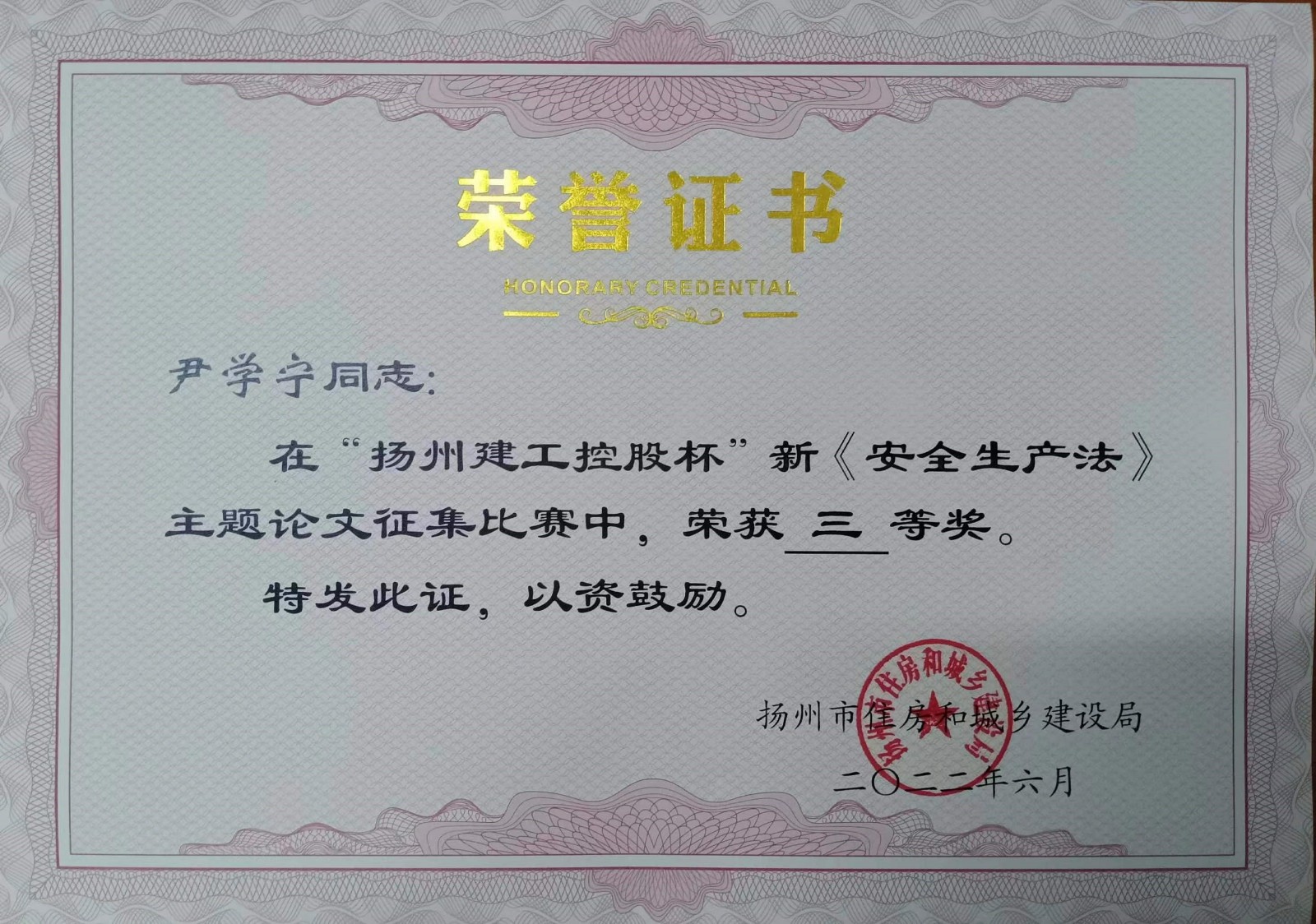 北京分公司4篇論文獲揚州市新《安全生產法》主題論文征文比賽獎項 時間:2022-07-16 3861 近日,從揚州市住房和城鄉建設局傳來喜訊,由北京公司投稿的4篇論文榮獲“揚州建工控股杯”新《安全生產法》主題論文征文比賽獎項,并獲頒證書,其中一等獎一項,三等獎一項,優秀論文獎兩項。