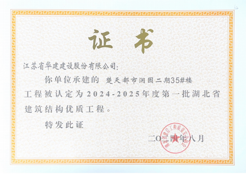 近日,公司承建的楚天都市潤(rùn)園二期項(xiàng)目被湖北省建設(shè)工程質(zhì)量安全協(xié)會(huì)評(píng)為“2023-2024年度第三批湖北省建筑工程安全文明施工現(xiàn)場(chǎng)”和“2024-2025年度第一批湖北省建筑結(jié)構(gòu)優(yōu)質(zhì)工程”。