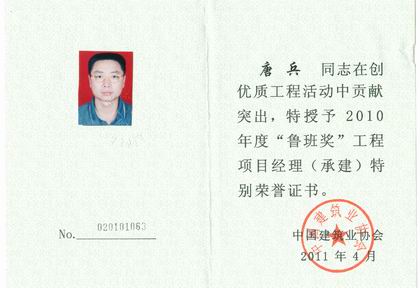 唐兵 時間:2012-04-10 7718 唐兵,現任深圳公司七處二工區副主任。先后擔任過5個重點大型超高層項目的技術負責人或項目經理,參與的施工工法、項目管理成果、實用新型專利等獲國家表彰,曾獲“江蘇省建筑業質量管理先進個人”稱號,被授予“創魯班獎工程項目經理特別榮譽證書”。