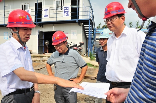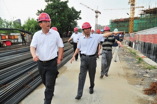 8月12日下午,揚(yáng)州市政府副市長(zhǎng)陳揚(yáng)、市建設(shè)局局長(zhǎng)楊正福一行前往江蘇華建代建的揚(yáng)州建設(shè)大廈暨規(guī)劃展覽館、市民中心項(xiàng)目工地現(xiàn)場(chǎng)視察。揚(yáng)州建工控股公司、江蘇華建董事長(zhǎng)陸金龍陪同視察,并將工程施工進(jìn)展情況向陳副市長(zhǎng)作了簡(jiǎn)要匯報(bào)。陳副市長(zhǎng)對(duì)建設(shè)大廈總體施工進(jìn)展表示滿意,并提出希望所有參建單位精心組織,科學(xué)管理,確保這一政府重點(diǎn)工程建設(shè)順利推進(jìn)。公司領(lǐng)導(dǎo)程杰等一起陪同視察。