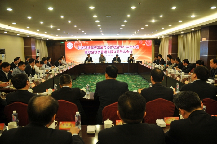 4月28日,江蘇華建品牌發(fā)展與協(xié)作聯(lián)盟2013年中會(huì)議暨聯(lián)盟投資管理有限公司股東會(huì)議在揚(yáng)州召開,19個(gè)聯(lián)盟成員、4個(gè)聯(lián)盟觀察員單位負(fù)責(zé)人和聯(lián)盟投資管理公司全體股東及經(jīng)營層參加會(huì)議,江蘇華建副董事長、總經(jīng)理宗有農(nóng)主持會(huì)議,聯(lián)盟主席陸金龍作了講話,揚(yáng)州市人民政府副市長聞道才、副秘書長侯承海出席會(huì)議。