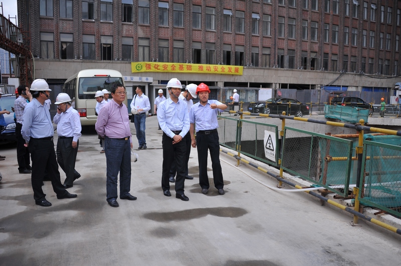 隨后,陸董事長一行還到洛克外灘源項目進行了參觀指導,對該項目在建和已完工部分進行了現(xiàn)場察看。洛克外灘源項目是江蘇建筑企業(yè)在外灘承建的唯一世博項目,工藝要求高,施工難度大,考察團一行對該項目給予極高的評價。