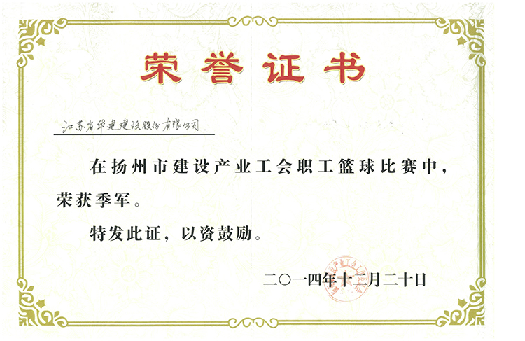 公司籃球隊獲市建設產業工會籃球賽季軍 時間:2014-12-22 3997 12月20日,在揚州市職業大學瘦西湖校區體育館舉辦的“揚州市建設產業工會籃球比賽”中,由總部機關、設計院和檢測中心職工組成的公司籃球隊努力拼搏、奮勇爭先,以兩勝一負的戰績榮獲比賽季軍。 建設產業工會田主席為公司籃球隊頒發獎狀