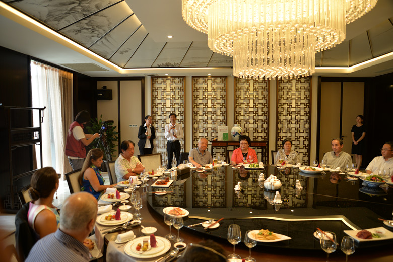 9月13日上午,來揚參加“中外絲路城市美食文化交流——揚州活動周”的一批外國友人,越南、文萊、緬甸、秘魯、毛里求斯、湯加王國、津巴布韋、韓國等國駐華大使(公使)、參贊、商務領事和意大利、阿爾巴尼亞有關官員,以及中國公共外交協會、中國——東盟中心、察哈爾學會負責人,包括香港衛視、大公報、中國新聞社、中國日報社、中國人民廣播電臺、中國網、意大利24小時太陽報的媒體記者等約40人,在市外事辦公室主任鄧清和江蘇華建董事長陸金龍陪同下,專程到江蘇華建展示中心參觀考察,并希望江蘇華建作為中國建筑業的品牌企業,能夠借助“一帶一路”國家戰略,發揮自身的實力優勢,到國外市場進行戰略合作。陸金龍董事長在餐敘前的講話中進一步介紹了華建的實力和戰略構想,表達了拓展海外市場的意愿。最后中國公共外交協會副會長呂鳳鼎、中國——東盟中心秘書長楊秀萍女士分別講話,盛贊江蘇華建輝煌的歷史、卓越的品牌、強大的規模實力以及在接待服務中展示出來的大企業的水平。呂會長說江蘇華建給他留下了深刻的印象,希望華建取得越來越大的成就。楊秘書長說,華建在走向改革開放之初的深圳開創了成功的事業,中國——東盟中心愿意為中國和東盟企業的發展牽線搭橋,找到雙方共贏的平臺,希望外國企業在中國找到發展商機,中國企業在國外找到合作良機。