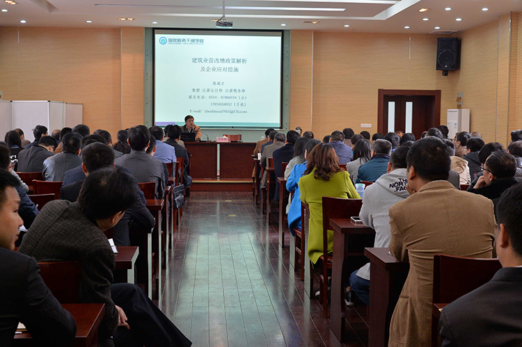 此次培訓(xùn)特邀市國家稅務(wù)學(xué)院陳斌才教授主講。陳教授就建筑業(yè)營改增政策及企業(yè)應(yīng)對措施作了專業(yè)分析和講解,并與參培人員進(jìn)行了互動(dòng)交流,使參培人員對建筑業(yè)營改增有關(guān)政策有了更深刻的理解和認(rèn)識(shí),達(dá)到了預(yù)期效果。