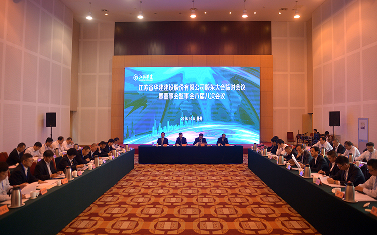 10月8日上午,公司股東大會(huì)臨時(shí)會(huì)議、董事會(huì)監(jiān)事會(huì)六屆八次會(huì)議、董事會(huì)六屆九次會(huì)議在揚(yáng)州會(huì)議中心召開。華建股東單位代表,董事會(huì)、監(jiān)事會(huì)成員,各區(qū)域公司和各分支機(jī)構(gòu)負(fù)責(zé)人、其他列席人員共50余人參加會(huì)議,宗有農(nóng)總經(jīng)理主持會(huì)議。