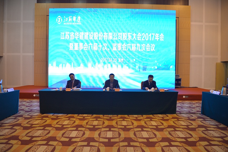 4月25日上午,江蘇華建股東大會2017年會在揚(yáng)州召開。各股東代表和公司董事、監(jiān)事出席會議,公司高級管理人員、各分支機(jī)構(gòu)和總部各部室負(fù)責(zé)人、律師團(tuán)律師列席會議,王宏董事長主持會議,揚(yáng)州市副市長何金發(fā)出席會議并致辭。