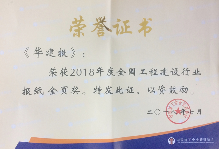 《華建報》再獲“全國工程建設行業報紙金頁獎” 時間:2018-07-23 4634 7月18日至20日,中國施工企業管理協會2018年度工程建設企業文化論壇暨通聯員工作會議在蘇州召開。公司內刊《華建報》再度獲評“2018年度全國工程建設行業報紙金頁獎”,公司翟法寶獲評“2018年度中國施工企業管理協會優秀聯絡員”。
