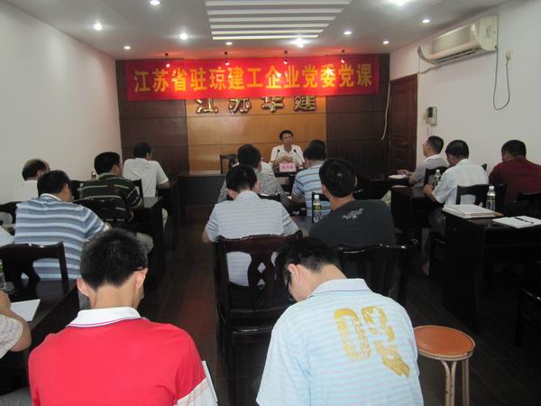 9月14日,江蘇駐瓊建工企業(yè)黨委邀請(qǐng)海南省直機(jī)關(guān)工委組織部長(zhǎng)謝衛(wèi)國(guó)給江蘇華建海南分公司黨員、預(yù)備黨員、入黨積極分子等30余人上了一堂題為《在新形勢(shì)下加強(qiáng)黨組織建設(shè)》的專(zhuān)題黨課,謝部長(zhǎng)從認(rèn)清形勢(shì)、明確任務(wù)、切實(shí)增強(qiáng)責(zé)任意識(shí),統(tǒng)籌兼顧、黨政結(jié)合、正確處理好黨政關(guān)系,嚴(yán)格要求、率先垂范、充分發(fā)揮表率作用,圍繞中心、創(chuàng)新載體、不斷激發(fā)工作活力等四個(gè)方面作了輔導(dǎo)。通過(guò)此次黨課教育,大家深受啟發(fā),心靈得到了一次洗禮和升華,決心腳踏實(shí)地,做好本職工作,盡心盡責(zé),以實(shí)際行動(dòng)迎接黨的十八大順利召開(kāi)。江蘇駐瓊建工企業(yè)黨委書(shū)記王宏出席并主持了黨課。