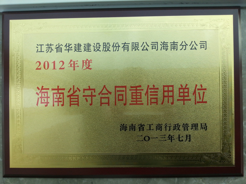 海南分公司喜獲海南省守合同重信用單位榮譽稱號 時間:2013-09-02 3630 8月底,海南分公司被海南省工商行政管理局表彰為2012年度“海南省守合同重信用單位”,這是公司連續21年獲此殊榮。多年來,海南公司堅持誠信為本,努力樹立品牌意識、形象意識,通過真誠服務贏得顧客的信賴、市場的拓展,在工程施工中信守合同,確保質量和工期,取得了卓有成效的業績。