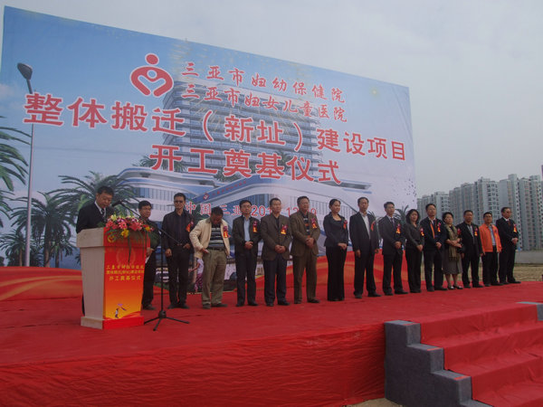 儀式上,三亞市副市長許振凌在致辭中強調本項目的重要性,市政府把這個項目確定為是省市重點工程,定位為三亞醫療衛生單位的示范工程,決心建設海南最亮麗、最有品味、最有實力的婦幼保健院。各部門要齊心協力,確保工程質量和安全,力爭將新院建設成為三亞市衛生系統的高質量、有品位的精品工程、滿意工程、民心工程。