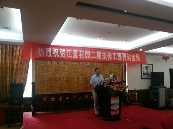 湖北公司江夏花園二期項目順利封頂 時間:2015-06-30 2831 6月28號,是湖北分公司值得慶祝的日子:公司在武漢市承建的第一個民用住宅江夏花園二期工程順利封頂。該工程項目地處居民集中區,其施工空間狹小,工期緊迫。湖北公司組織強有力的項目管理團隊,精心籌備,克服各種困難,保質保量的完成了工程既定目標。 公司副總經理、海南區域公司總經理王宏出席封頂儀式并致辭,對各參建單位表示感謝,對項目部取得的成績表示肯定并希望大家再接再厲,確保順利竣工。