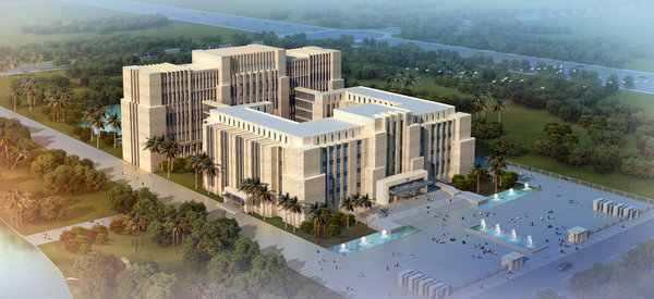海南省第一中級(jí)人民法院審判法庭大樓工程位于海口市美蘭區(qū)江東白駒大道南側(cè),總建筑面積33980 平方米,分為審判法庭樓、法庭附屬樓兩棟建筑,是一座集審判業(yè)務(wù)、法律服務(wù)、辦公和法制教育于一體的綜合性公共建筑。