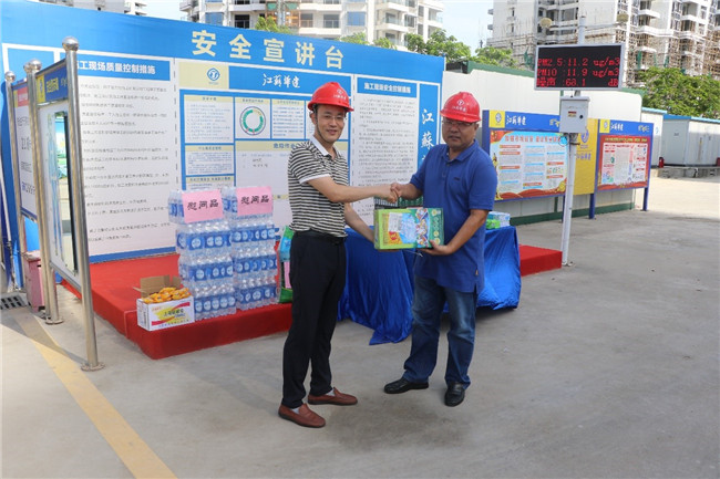 公司工會赴工地進行高溫慰問 時間:2019-06-11 2425 6月10日上午,海南分公司黨總支副書記、工會主席郁遠帶隊走訪慰問海口恒大·美麗沙項目部,檢查項目安全生產情況,并給奮戰在高溫、露天生產第一線的員工送去涼茶、綠豆、人丹等防暑用品,送去企業及工會組織的關懷。 在詳細詢問了工程推進情況和一線職工的工作、生活情況后,郁遠書記囑咐項目負責人要安排好施工現場人員的作息時間,做好降溫消暑保護措施。并叮囑一線的職工要注意人身與施工安全,合理安排工作時間,做到勞逸結合,確保高溫期的安全生產。(辦公室)