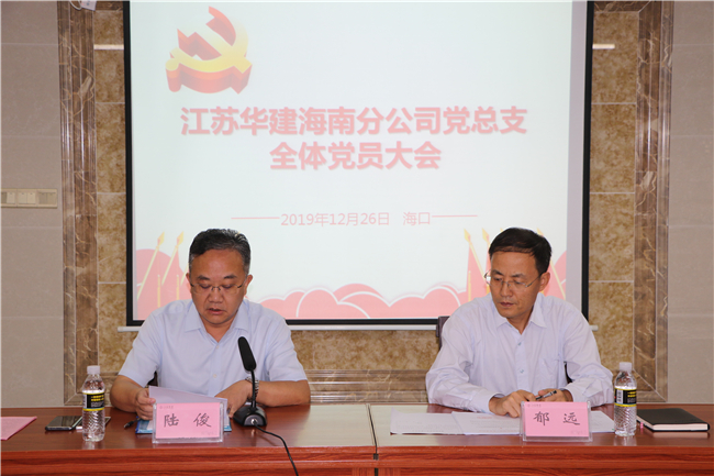 黨員大會上,海南分公司黨總支書記陸俊代表海南分公司黨總支委員會向大會作了題為“圍繞經濟抓黨建、抓好黨建促經濟”的工作報告。報告從牢固樹立政治意識,切實加強黨員學習教育;大力加強組織建設,切實發(fā)揮黨組織戰(zhàn)斗堡壘作用;持續(xù)開展黨風廉政建設,自覺踐行中央八項規(guī)定;深入開展黨群共建活動,凝心聚力促進公司穩(wěn)定發(fā)展四個方面,回顧了自2016年12月8日換屆以來,海南分公司黨總支在江蘇駐瓊建工企業(yè)黨委和公司總部黨委的正確領導下,緊緊圍繞“服務經濟發(fā)展、促進和諧穩(wěn)定”的主線,認真學習貫徹黨的十八大以來黨中央的新思想、新觀點、新部署和習近平總書記系列重要講話精神,以開展“創(chuàng)先爭優(yōu)”、“兩學一做”和“不忘初心,牢記使命”主題教育等活動為載體,不斷加強黨的思想、組織、作風和制度建設,為江蘇華建海南分公司做強做優(yōu)做大,實現公司健康穩(wěn)定發(fā)展提供了堅強的思想、政治和組織保證。
