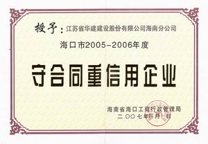 企業誠信榮譽 時間:2019-01-01 8783 2001-2002年度海口市守合同重信用 2003-2004年度海口市守合同重信用 2005-2006年度海口市守合同重信用 2002-2004年度海南省守合同重信用 2006年度全國守合同重信用1 2006年度全國守合同重信用2 2006年度全國守合同重信用3 2006年度全國守合同重信用4 2012年度海南省守合同重信用