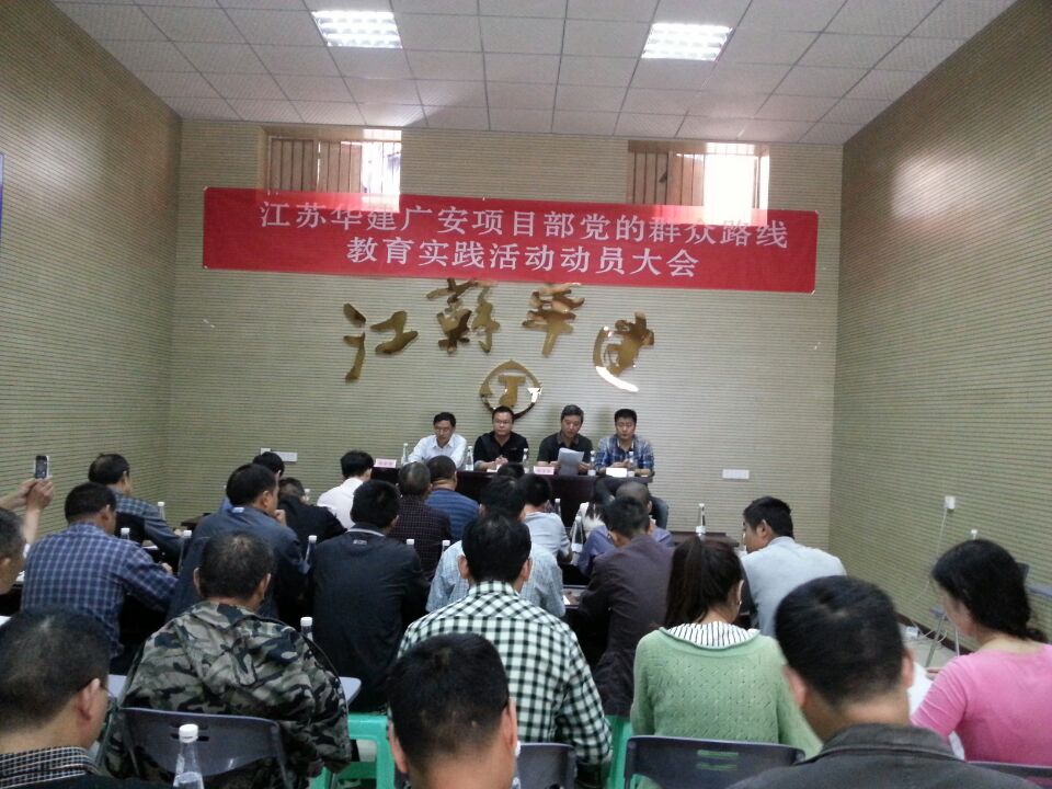 廣安官盛新區建設項目部黨小組召開黨的群眾路線教育實踐活動動員大會 時間:2014-04-17 4910 2014年4月16日,江蘇華建四川廣安官盛新區基礎設施暨美好家園建設項目部黨小組召開黨的群眾路線教育實踐活動動員大會。項目部所有黨員及各重要崗位管理人員共40余人參加會議。會議由珠海區域公司副總經理嚴正濤主持。珠海區域公司副總經理、總工程師周學軍在會上傳達了上級黨委關于深入開展黨的群眾路線教育實踐活動的實施方案和總的要求。珠海區域公司辦公室相關人員向與會者詳細介紹了本次活動所著力反對的“四風”的主要表現形式。官盛鎮黨委副書記馬江林參加會議,并對黨小組相關活動的開展提出了具體要求和指導意見。
