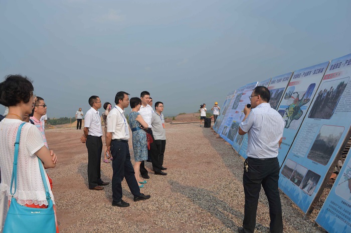第二屆“西三角”區域開放合作交流會客商代表團赴廣安官盛新區參觀考察 時間:2014-08-08 4467 8月7日下午,前來四川廣安參加第二屆“西三角”區域開放合作交流會的客商代表團赴我公司承建的四川廣安官盛新區項目施工現場參觀考察。廣安區委常委、官盛新區管委會副主任李榮盛就官盛新區整體概況及未來規劃發展向到場嘉賓進行了詳細解說。廣安市、區相關政府領導及官盛新區管委會相關人員一并到場陪同考察。