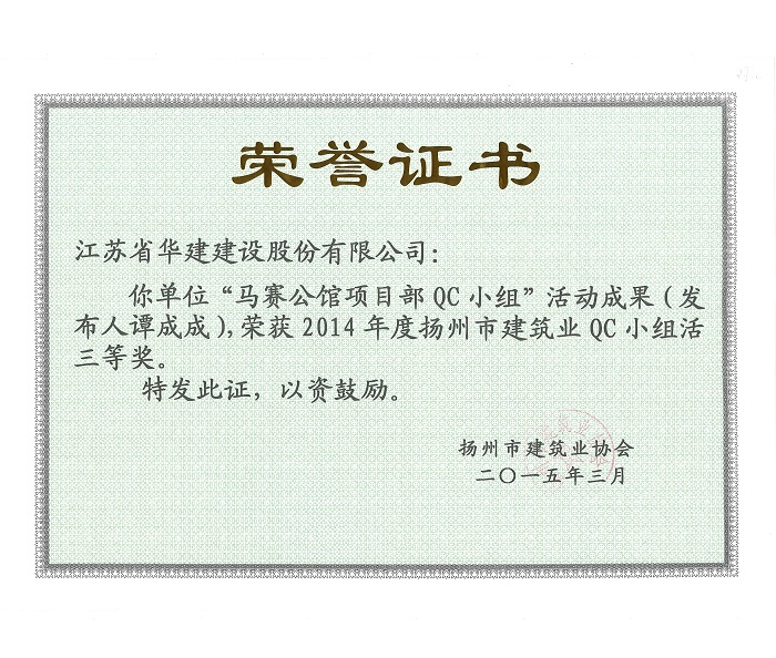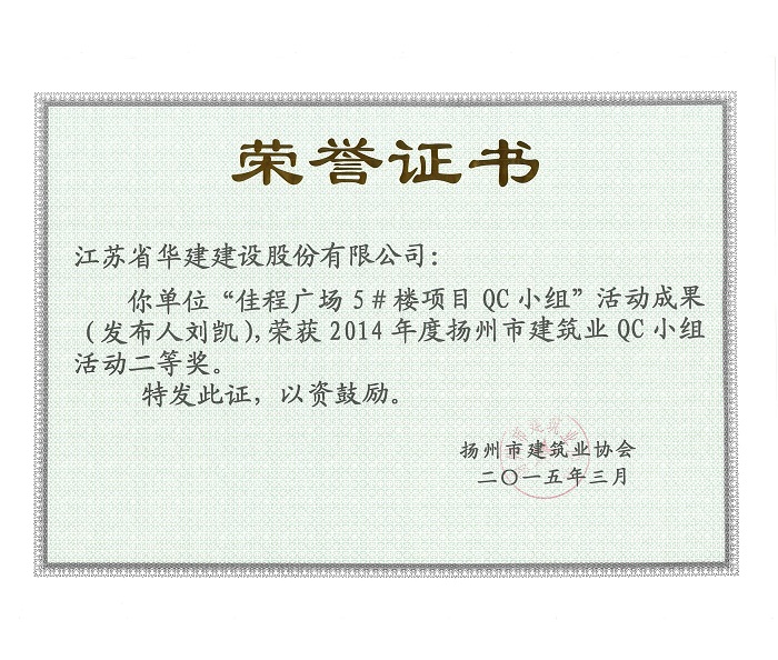 公司5項(xiàng)成果獲揚(yáng)州市建筑業(yè)QC成果獎(jiǎng)