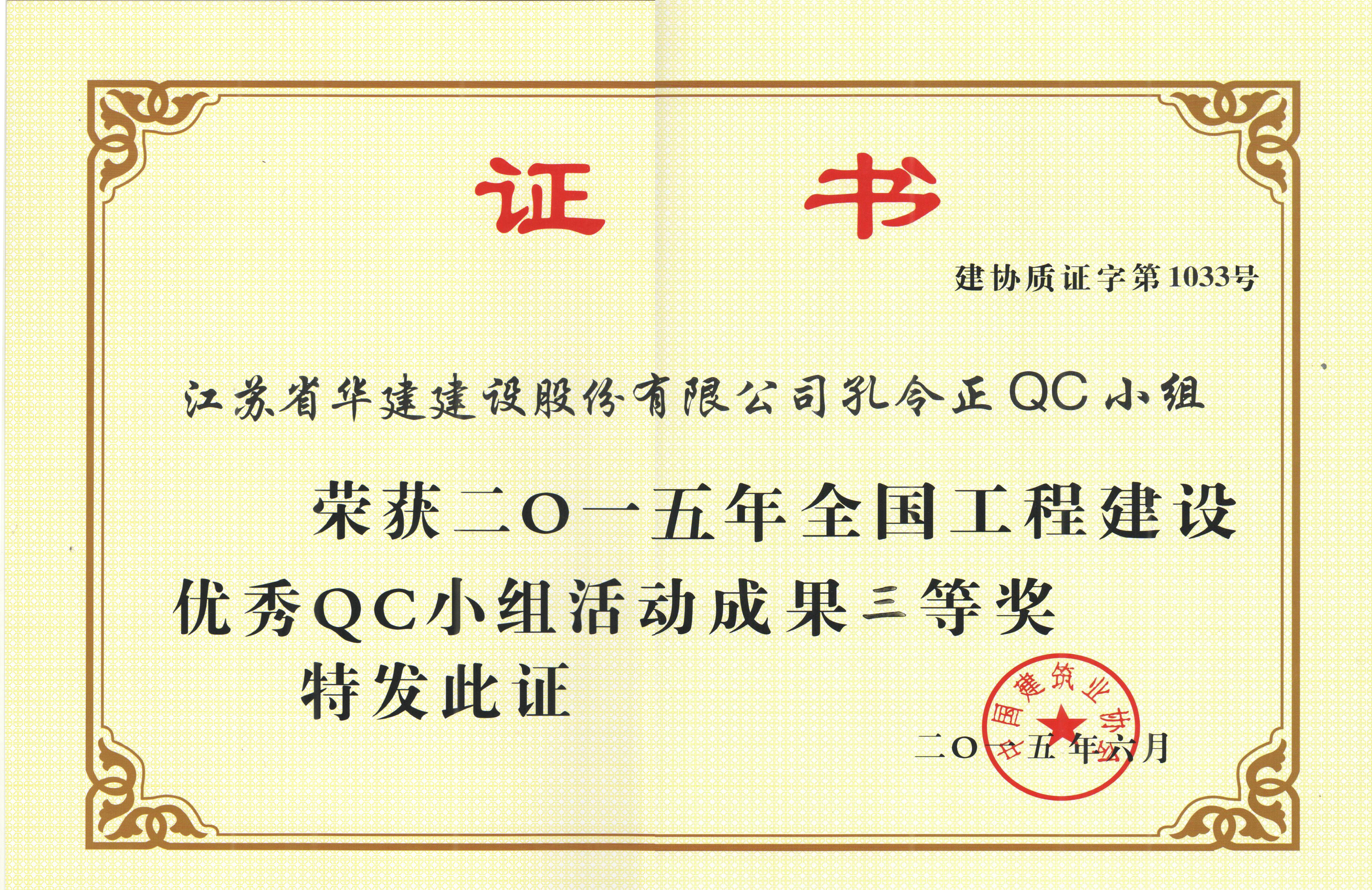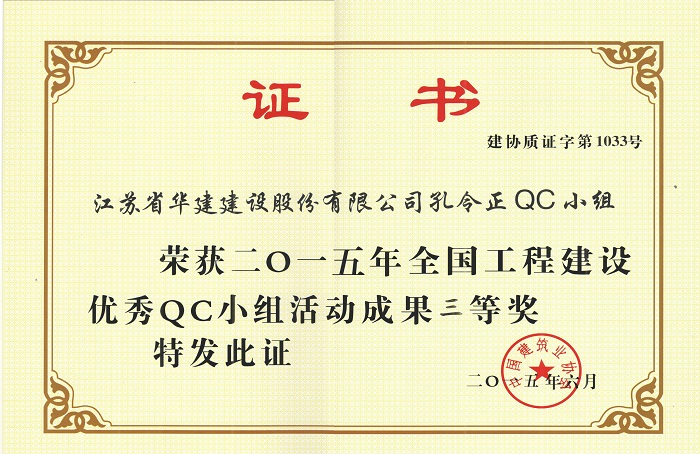 6月23—25日,由中國建筑業協會舉辦的“2015年全國工程建設優秀QC小組活動成果交流會”在云南昆明舉行。珠海區域公司“江蘇省華建建設股份有限公司孔令正QC小組” 經江蘇省建筑行業協會推薦參加交流會,其成果《剝蝕丘陵地貌多形截面鋼筋混凝土灌注樁施工新方法》榮獲中建協QC成果三等獎。中國建筑業協會QC成果獎是建筑領域QC成果最高獎項,該獎項的獲得是對公司在技術質量管理工作方面的充分肯定。此外根據該項成果編寫的工法還獲得2014年度江蘇省省級工法。