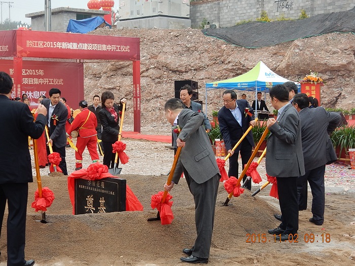 11月2日上午9:00,重慶黔江新城重點建設(shè)項目集中開工儀式在我公司承建的黔江區(qū)學(xué)府花苑項目現(xiàn)場隆重舉行。黔江區(qū)委書記余長明、區(qū)長徐江、人大主任梁正華、政協(xié)主席秦代書率四套班子成員和項目業(yè)主、施工方、監(jiān)理方代表等共同出席儀式并為項目培土奠基。