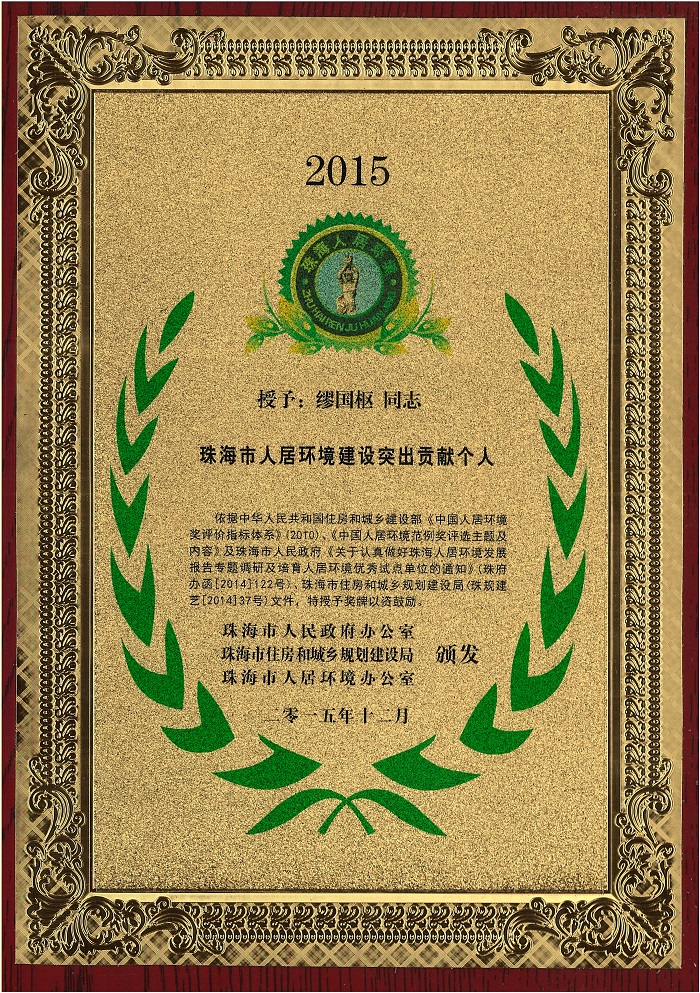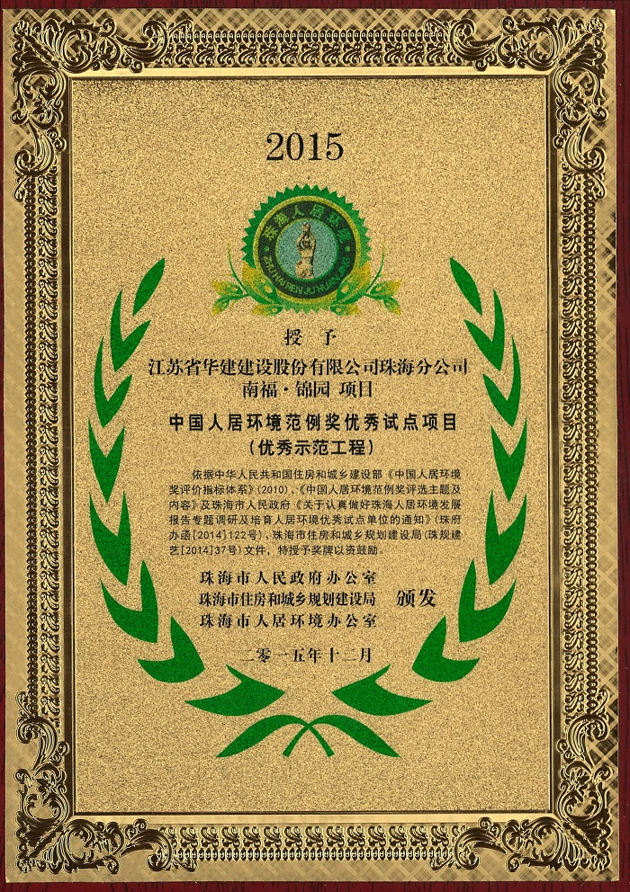 公司榮獲珠海市人居環境建設突出貢獻單位等四項表彰 時間:2015-12-22 4324 近日,珠海公司被珠海市人民政府辦公室、珠海市住房和城鄉規劃建設局和珠海市人居環境辦公室聯合表彰為珠海市人居環境建設突出貢獻單位(優秀建筑施工企業),繆國樞總經理被授予珠海市人居環境建設突出貢獻個人稱號,由我公司承建的拱北海關業務技術綜合樓及南福·錦園項目榮獲中國人居環境范例獎優秀試點項目(優秀示范工程)。