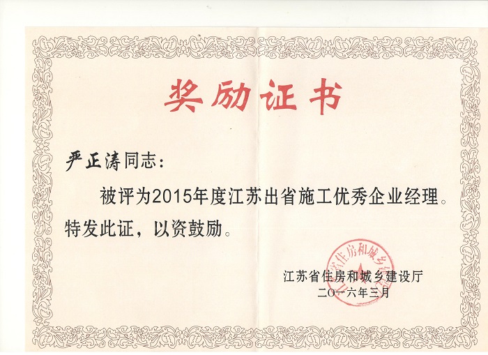 重慶分公司被表彰為“2015年度江蘇出省施工先進企業” 時間:2016-04-20 2977 近日,重慶分公司被江蘇省住房和城鄉建設廳表彰為“2015年度江蘇出省施工先進企業”,重慶分公司總經理嚴正濤榮獲“2015年度江蘇出省施工優秀企業經理”稱號,樊晨亮被評為“2015年度出省施工優秀黨務工作者”。