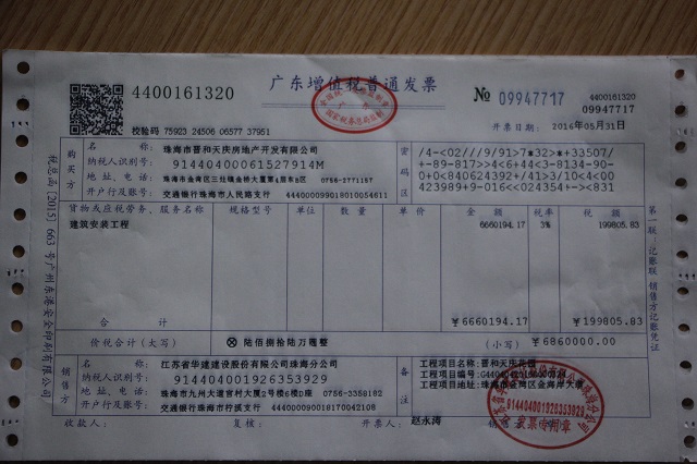 珠海區域公司第一張增值稅發票成功開具 時間:2016-06-01 3002 建筑行業“營改增”自5月1日起正式實施,公司領導高度重視“營改增”工作,先后完成了稅控設備軟硬件更新、數次的“營改增”知識培訓及交流會,并在主管國稅局完成了有關一般納稅人認定、增值稅發票額度調整、公司老項目備案等工作。 5月31日,財務處成功開具了第一張增值稅普通發票,此票為公司第五項目部承擔施工任務的晉和天慶花園總承包工程使用,走出了公司“營改增”工作的堅實一步。
