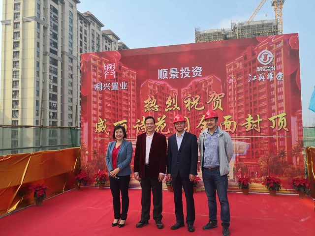 2019年1月14日,第一項(xiàng)目部承擔(dān)施工任務(wù)的陽(yáng)江威麗詩(shī)花園2期項(xiàng)目提前60天實(shí)現(xiàn)主體結(jié)構(gòu)全面封頂。珠海利騰集團(tuán)董事長(zhǎng)黃金紅、總經(jīng)理譚劍云,江蘇華建珠海區(qū)域公司總經(jīng)理呂方達(dá)等參加封頂儀式。