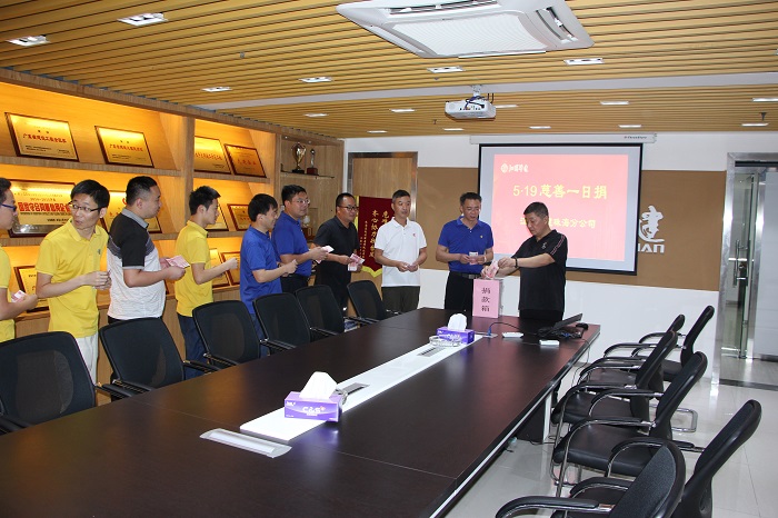 公司積極參與“5.19”慈善一日捐活動 時間:2019-05-18 2244 5月17日,珠海公司黨委積極響應總部黨委的號召,組織機關全體員工積極參與揚州市“5.19”慈善一日捐活動。大家紛紛慷慨解囊、奉獻愛心,共籌得善款5700元,以實際行動引領樂善好施、向上向善的文明風尚,為慈善扶貧事業貢獻綿薄之力。