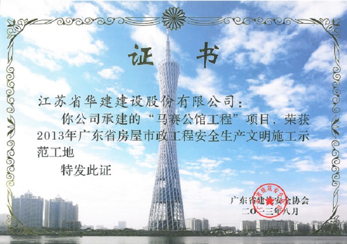 2013年馬賽公館工程廣東省“AA級安全文明標準化工地”