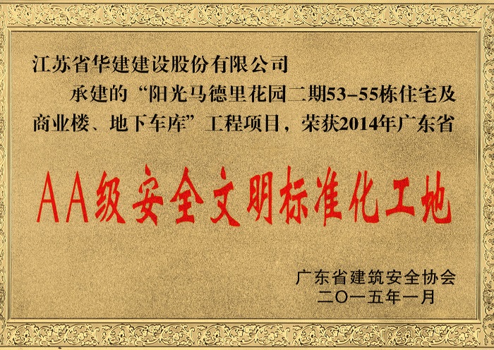 陽光馬德里二期工程榮獲2014年廣東省AA級安全文明標準化工地