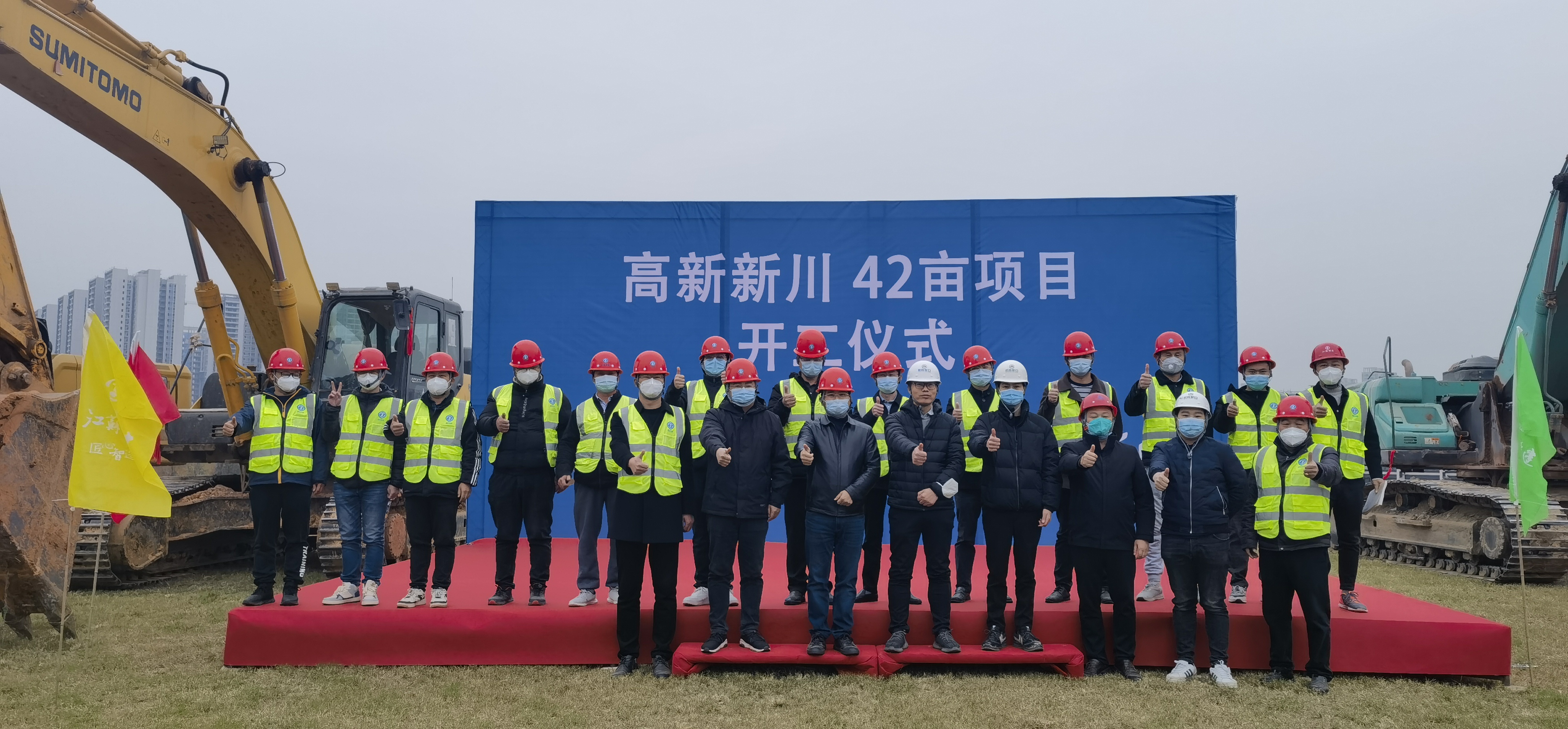 12月14日下午,招商地產(chǎn)高新新川42畝項目現(xiàn)場彩旗獵獵,挖掘機、工程車等依次排開、整裝待...
