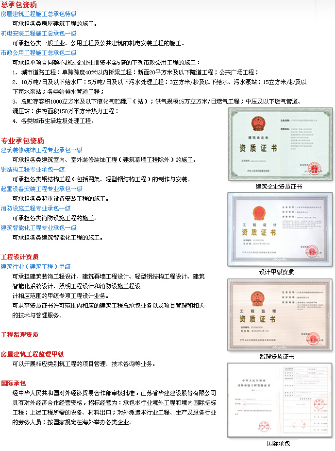 總承包資質建筑工程施工總承包特級 可承接建筑各等級工程施工總承包、工程總承包和項目管理業...