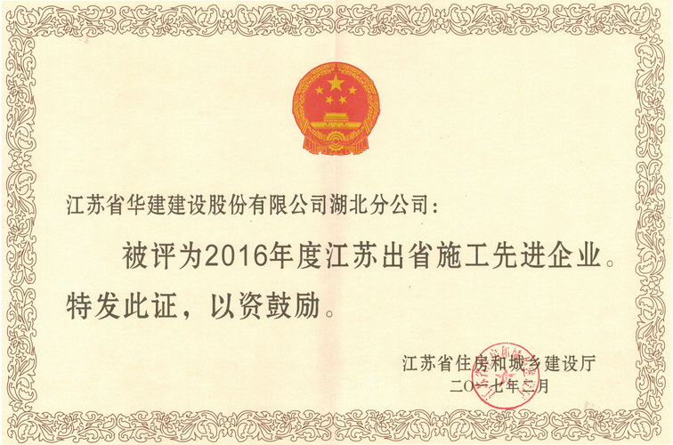 2016年度江蘇省進廣東、廣西、福建、海南建筑施工先進企業2016年度江蘇省進中南片區建筑...