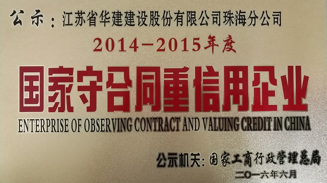 日前,國(guó)家工商行政管理總局向社會(huì)公示2014-2015年度“守合同重信用”企業(yè)名單,珠海公...