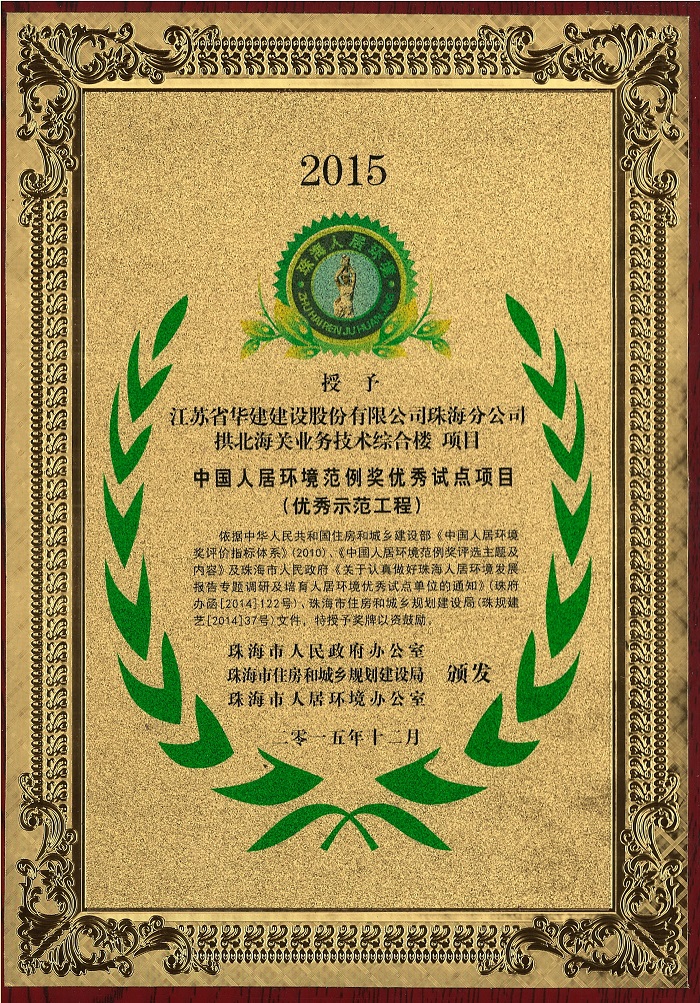 拱北海關(guān)業(yè)務(wù)技術(shù)綜合樓榮獲中國人居環(huán)境范例獎(jiǎng)優(yōu)秀試點(diǎn)項(xiàng)目(優(yōu)...