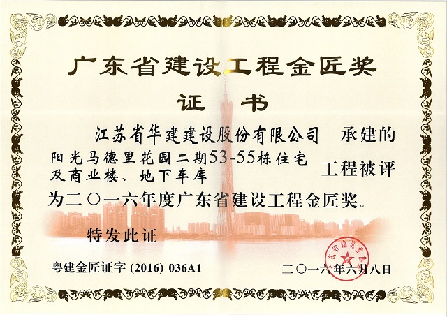 2016年度陽光馬德里53-55棟建設(shè)工程金匠獎(jiǎng)