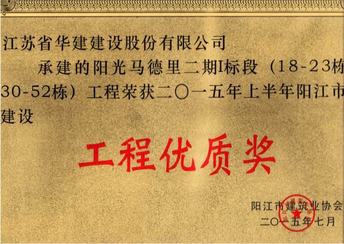 陽光馬德里二期I標段(18-23棟、30-52棟)工程獲20...