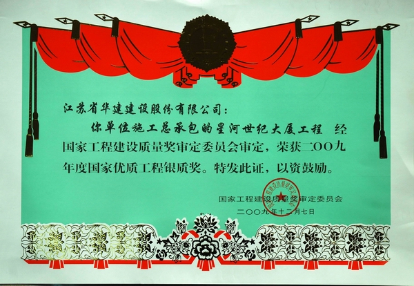 星河世紀大廈 時間:2010-01-19 8213 該工程位于深圳市福田區深南大道南與彩田路西交匯處,是深圳市中心區東門標志性建筑。該工程一裙三塔,32-39層,高173.2米,總建筑面積156680平方米,是集辦公、商業、住宅為一體的綜合樓。 該工程先后榮獲2006年度“深圳市安全生產文明施工優良工地”、2007年度深圳市優質工程“金牛獎”第一名、2007年度廣東省優良樣板工程獎、2007年度江蘇省“揚子杯”省外優質工程獎,2009年12月被評為2009年度國家優質工程銀質獎。