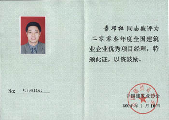 他本人先后被評為深圳市優(yōu)秀項(xiàng)目經(jīng)理、揚(yáng)州市優(yōu)秀項(xiàng)目經(jīng)理、江蘇省優(yōu)秀項(xiàng)目經(jīng)理、江蘇省建筑業(yè)質(zhì)量管理先進(jìn)個(gè)人、揚(yáng)州市勞動(dòng)模范、江都市有突出貢獻(xiàn)的中青年專家、建設(shè)部優(yōu)秀項(xiàng)目經(jīng)理,在國家級刊物發(fā)表論文40多篇、省和國家級工法8項(xiàng),并有5項(xiàng)專利,為企業(yè)的發(fā)展作出了較大貢獻(xiàn)。