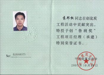 他努力踐行科學(xué)發(fā)展觀,狠抓施工技術(shù)管理,擔(dān)任項(xiàng)目經(jīng)理多年,負(fù)責(zé)施工的工程屢創(chuàng)佳績,屢獲殊榮,他負(fù)責(zé)施工的項(xiàng)目達(dá)35項(xiàng)之多,建筑面積97萬m2,其中18層以上31幢。工程質(zhì)量幢幢優(yōu)良,8項(xiàng)工程獲江蘇省優(yōu),1項(xiàng)獲廣東省優(yōu)工程,6項(xiàng)獲深圳市優(yōu),兩項(xiàng)獲深圳市最高質(zhì)量榮譽(yù)“金牛獎(jiǎng)”,兩項(xiàng)問鼎中國建設(shè)工程最高質(zhì)量榮譽(yù)魯班獎(jiǎng)。袁邦權(quán)項(xiàng)目部業(yè)成為業(yè)內(nèi)有影響的锃亮品牌,先后被授予公司雙文明先進(jìn)集體、公司思想政治工作先進(jìn)單位,“江蘇省青年文明號”、“全國青年文明號”等光榮稱號。
