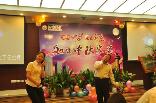 公司舉辦2012中秋家宴 時間:2012-10-06 4415 9月29日,公司在揚州西園大酒店隆重舉辦“濃情中秋,歡樂國慶——2012中秋家宴”,公司總部機關(guān)、在揚分支機構(gòu)和駐外分公司回?fù)P休假的經(jīng)營層人員約百人共聚一堂,喜迎中秋、國慶佳節(jié)的來臨。家宴上,無論是領(lǐng)導(dǎo)還是普通員工,大家縱情高歌,歡樂表演,充分展現(xiàn)了華建大家庭其樂融融的喜慶氣氛,同時展示了華建人昂揚向上的精神風(fēng)貌。