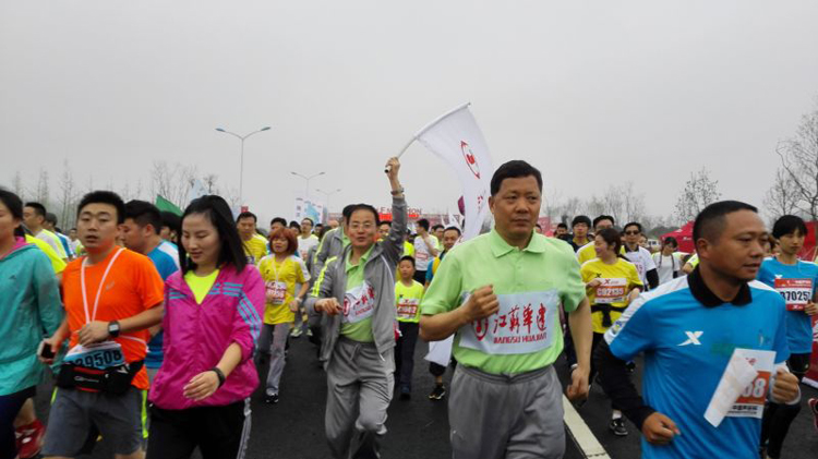 4月19日上午8點(diǎn),由中國(guó)體育協(xié)會(huì)、江蘇省體育局、揚(yáng)州市政府共同主辦的“中國(guó)聲谷杯”2015揚(yáng)州鑒真國(guó)際半程馬拉松賽暨全國(guó)半程馬拉松錦標(biāo)賽正式鳴槍開(kāi)賽。江蘇華建愛(ài)跑團(tuán)與來(lái)自全球43個(gè)國(guó)家和地區(qū)的3.5萬(wàn)選手共同沖出起跑線。